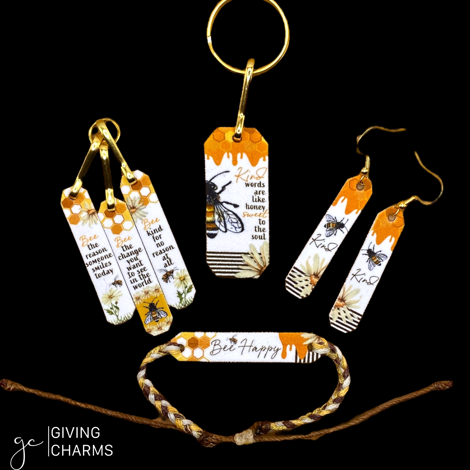 Share a smile with these BEE KIND earrings.