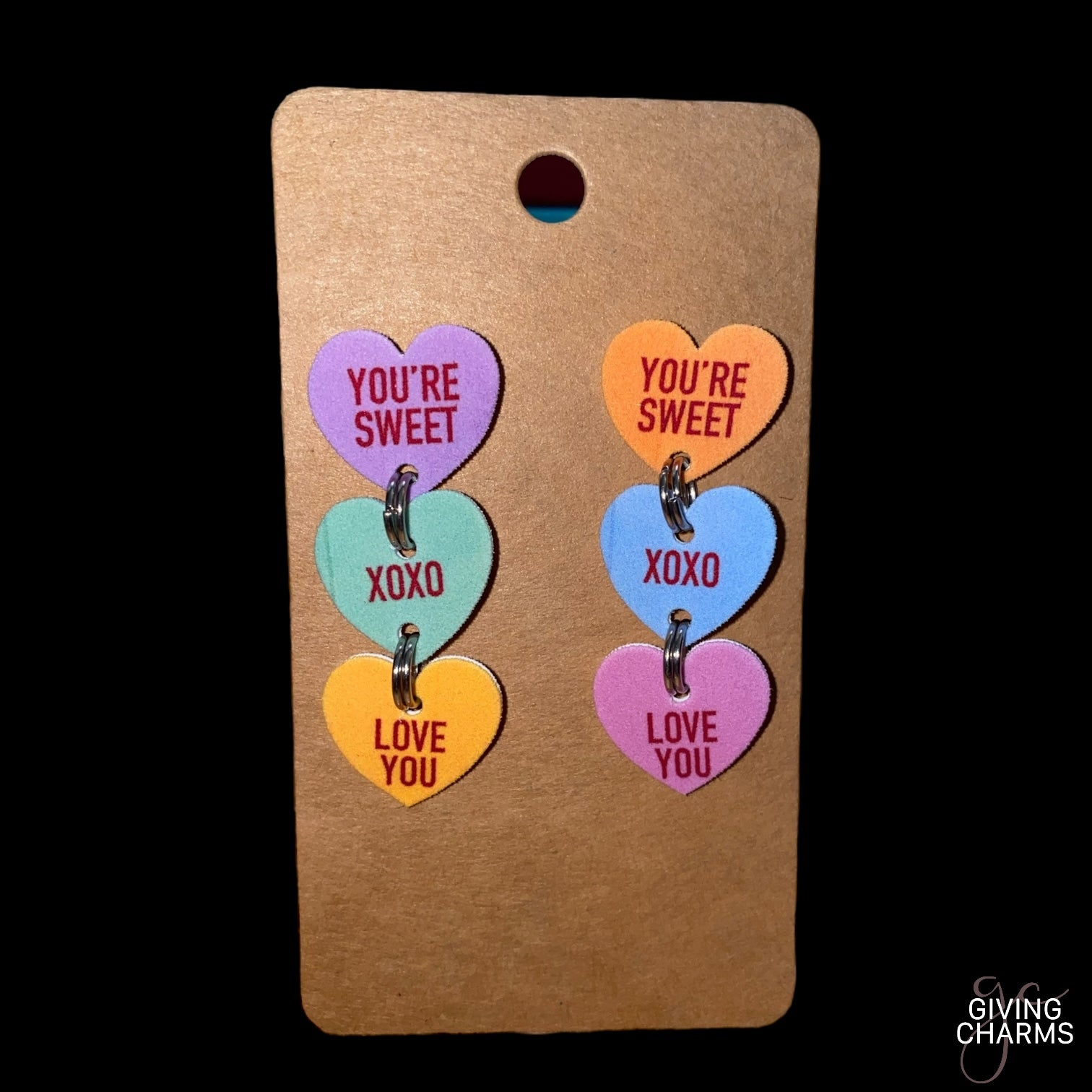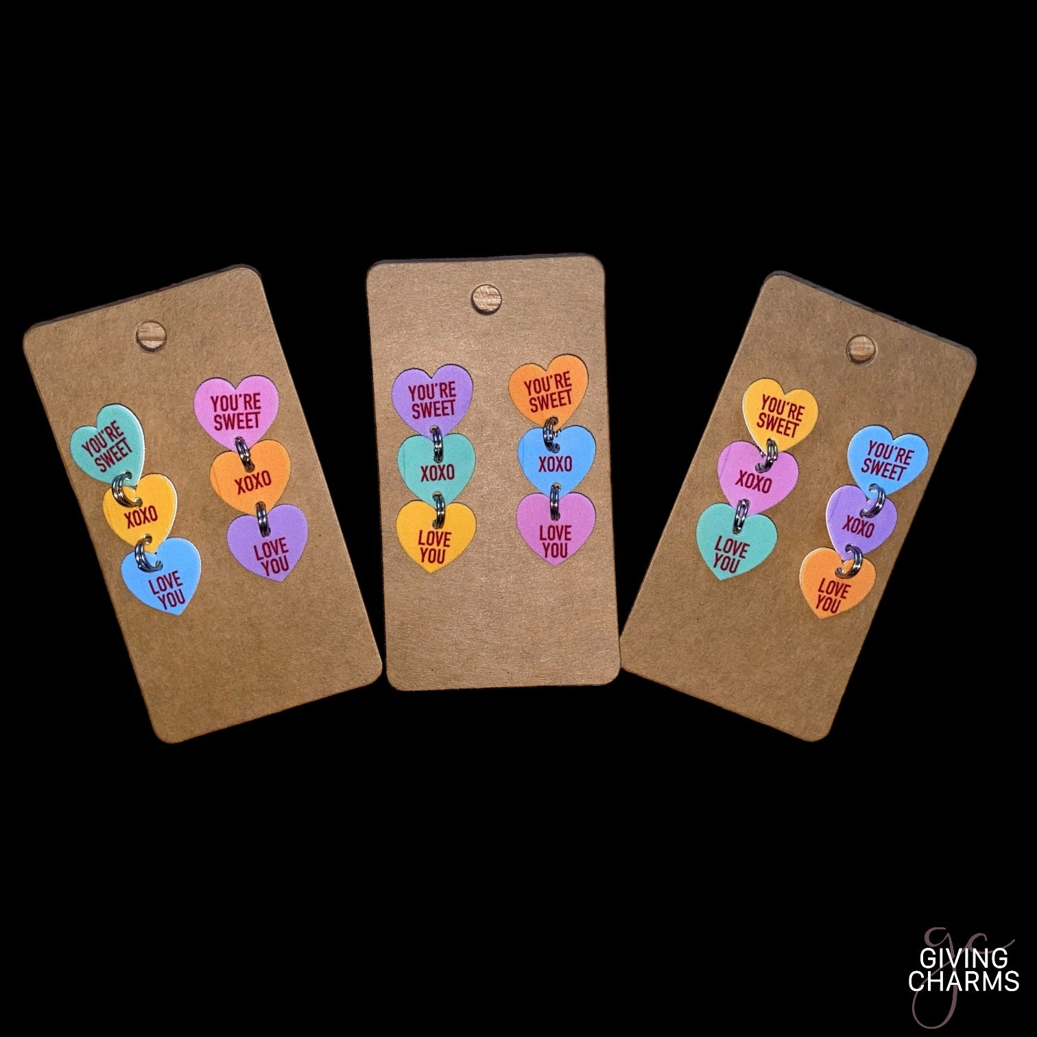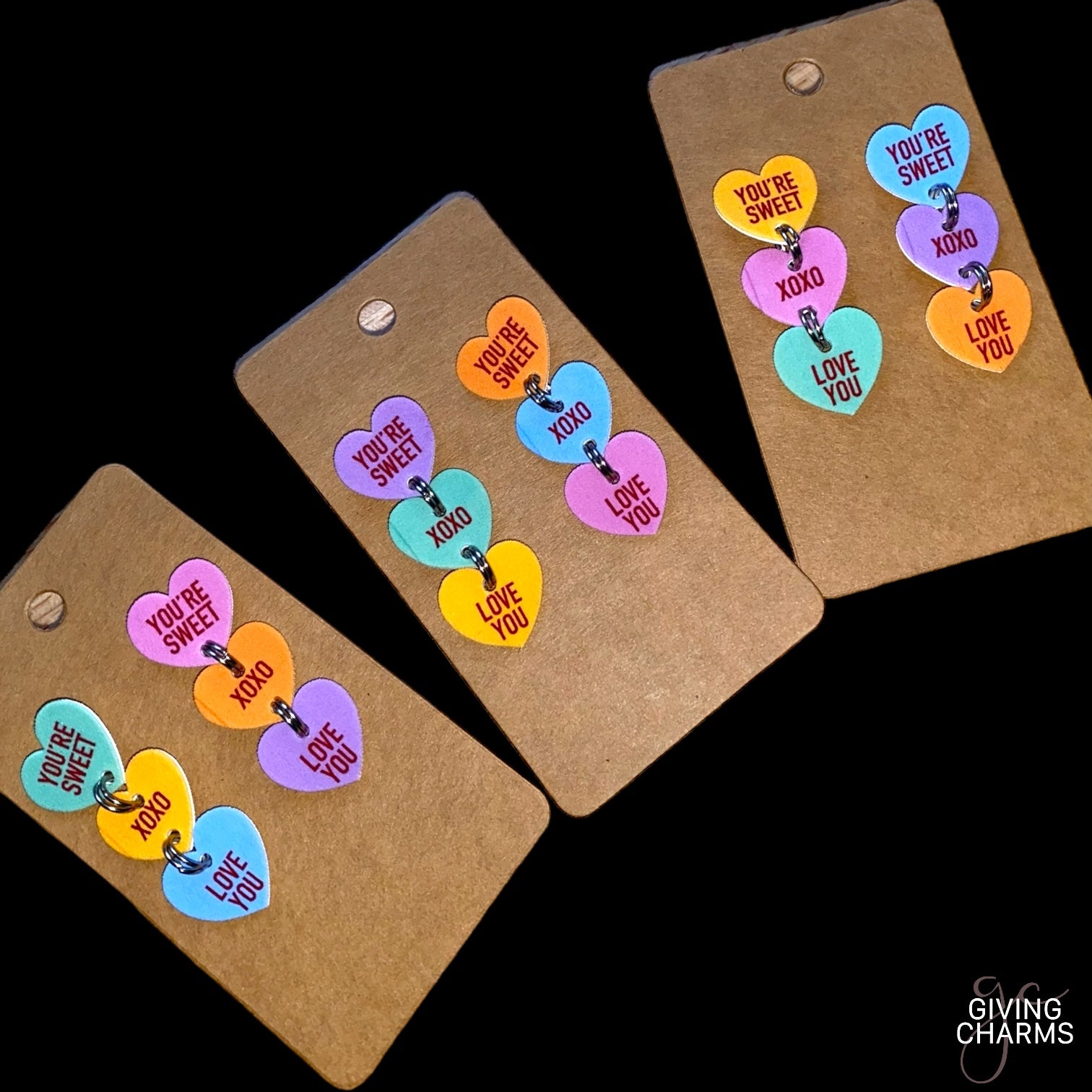 The perfect addition to your Valentine’s outfit! These earrings feature 3-tiers of conversation hearts, but remain lightweight to wear all day. A great teacher gift!