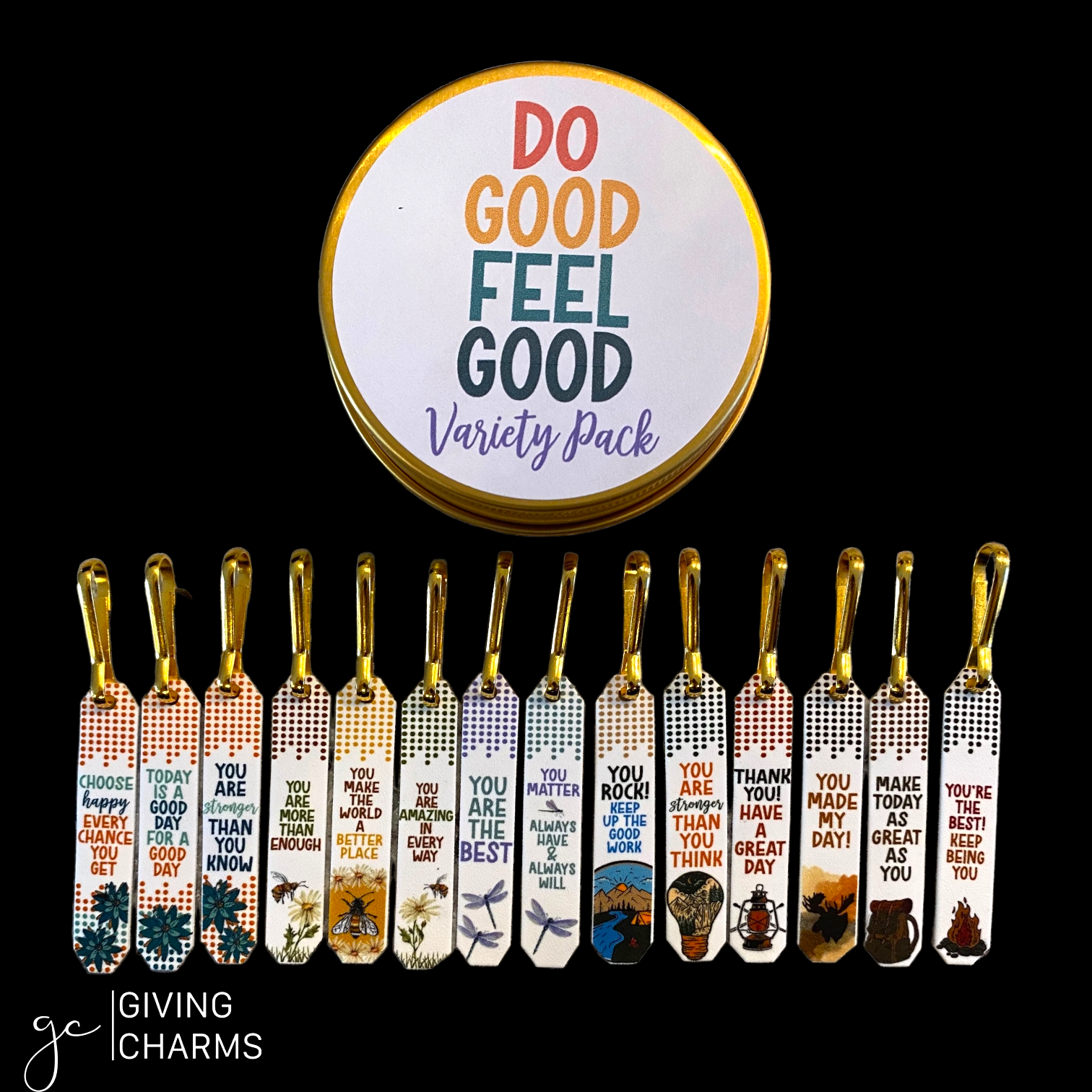 This set features 14 shareable charms in a tin, perfect to keep in your purse, car, or desk! Designs are great for men, women, adults, kids & everyone in between.