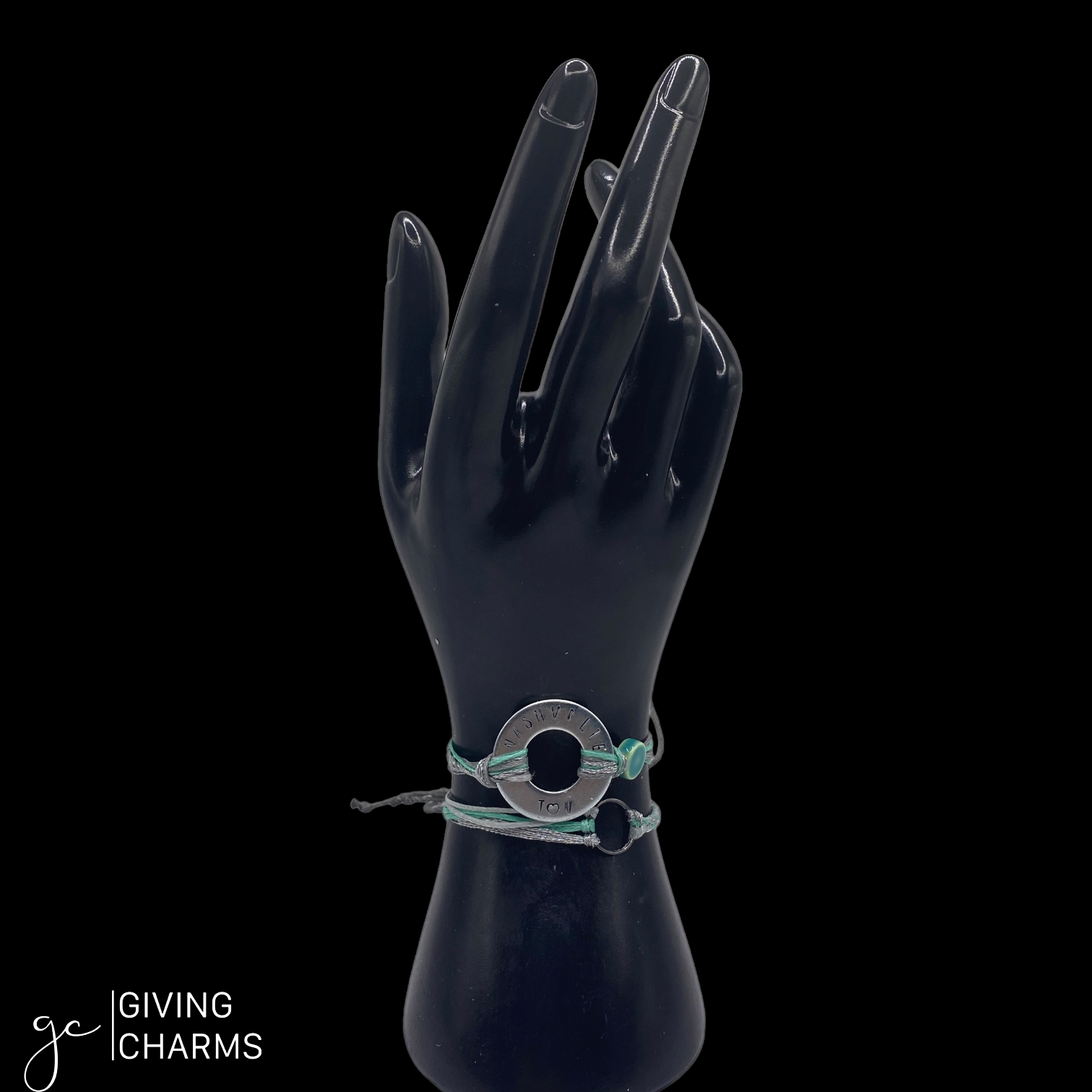 This bracelet set is completely handmade, from the hand-hammered lettering on the washer to the intricate bead placement and braiding. Best of all, the bead on this set acts as a fidget/worry bead, that can be shifted for stress relief. Only ONE available.