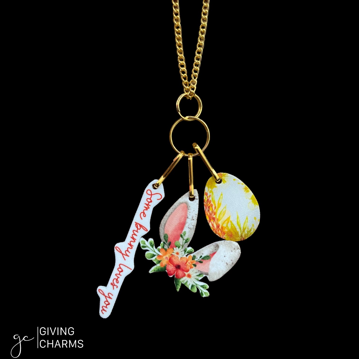 The perfect necklace for Easter Sunday! This set features 3 wear & share charms on a gold loop & 24” gold chain necklace.