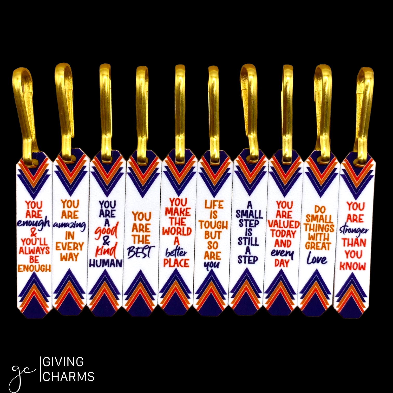 This set features 10 wear & share charms in a convenient tin, great for your purse, car or desk! Wear charms on your backpack, zipper, purse, necklace, etc. Great for TIPPING!