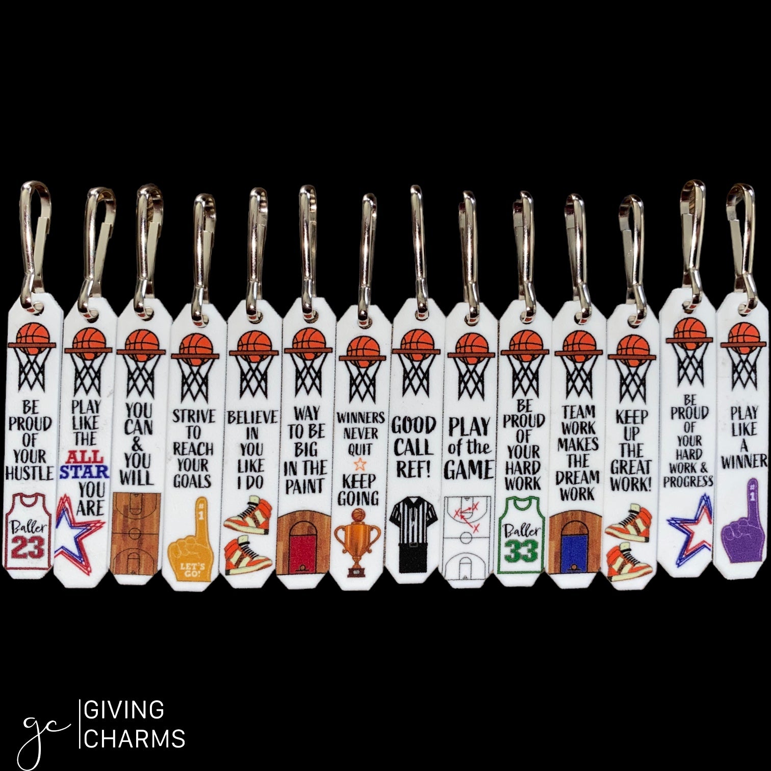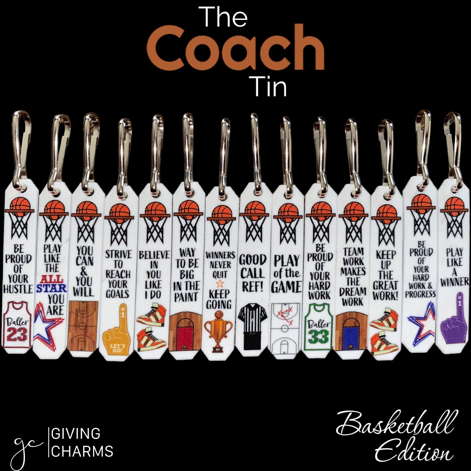 The *perfect* Coach gift…that keeps giving! This set features 14 charms in a tin, great for sharing with players, refs & other teams. Clip to gym bags, water bottles, backpacks, purses, bouquets & more! A great affordable way to recognize players!
