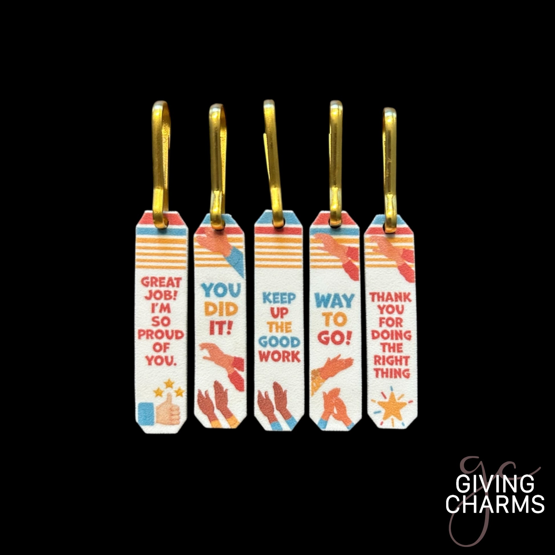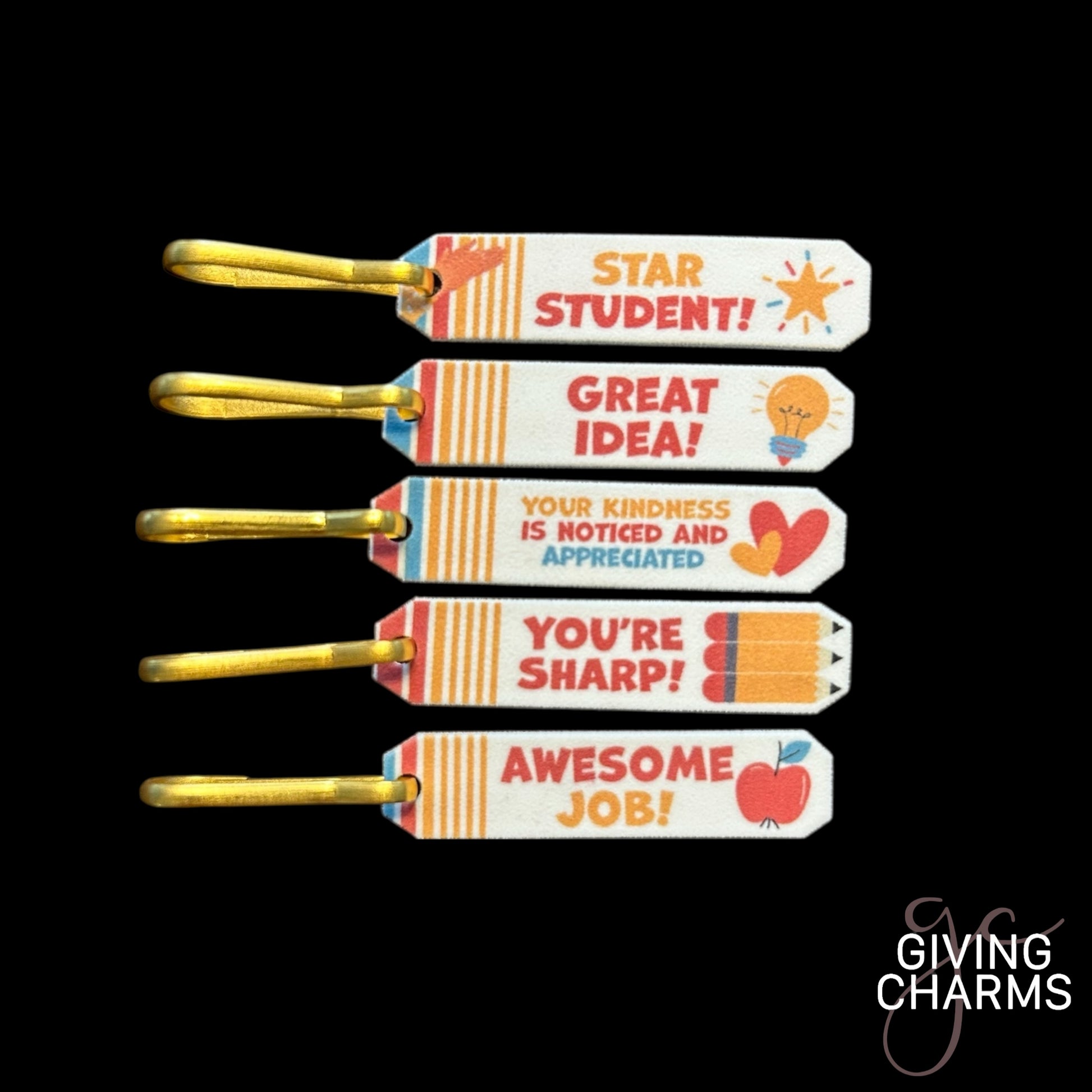 Start a kindness movement in the classroom with these bright, inspiring charms! This set features a variety of TWENTY charms, great to wear and share with students and teachers alike. This is our best deal yet…because teachers deserve it.