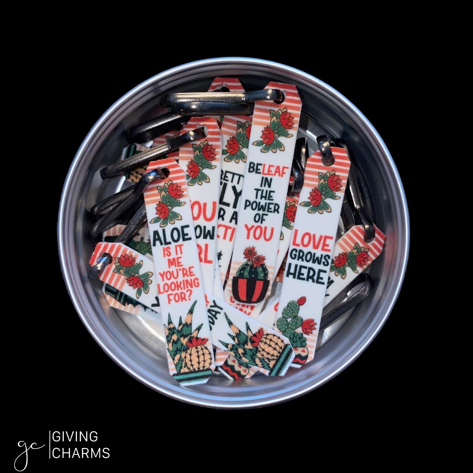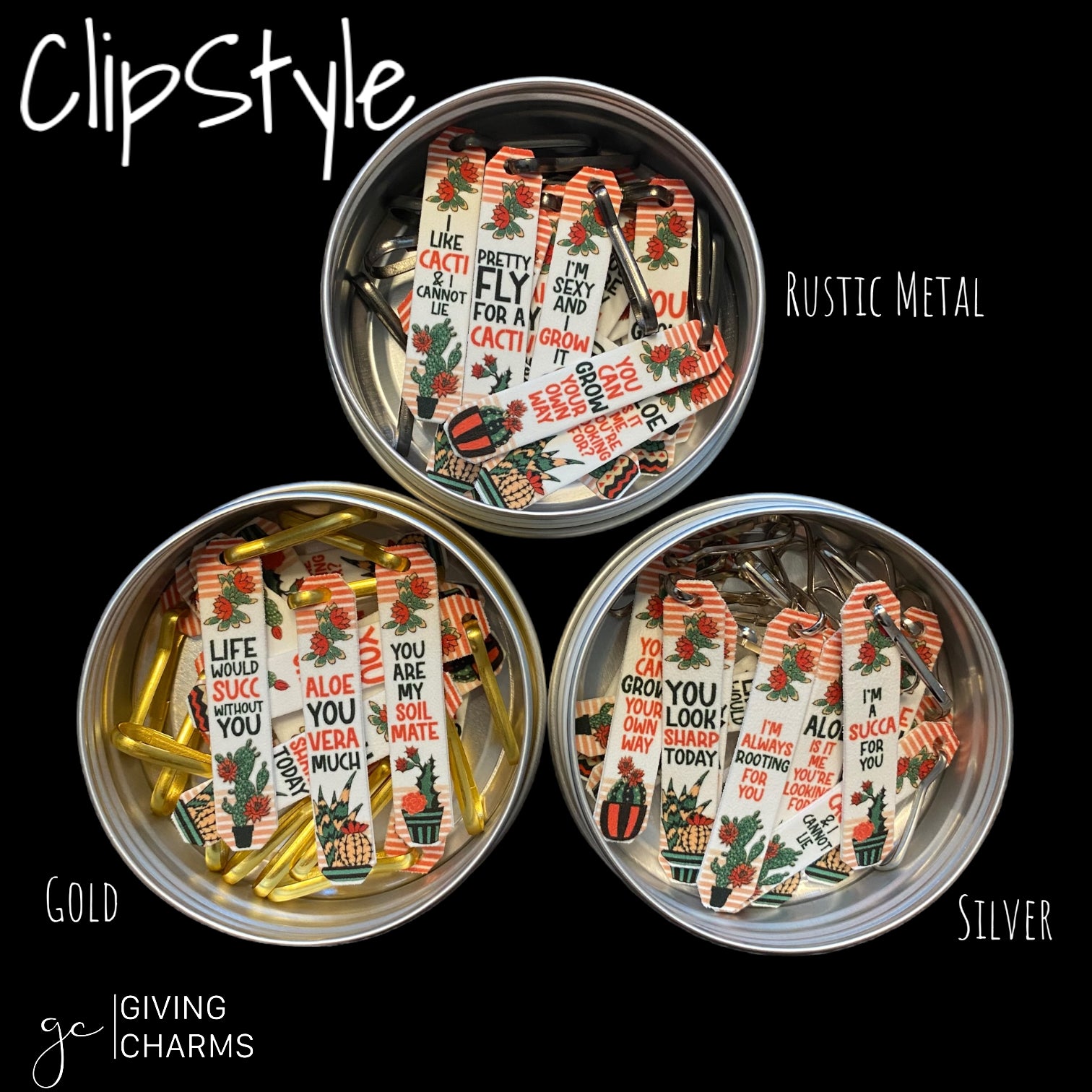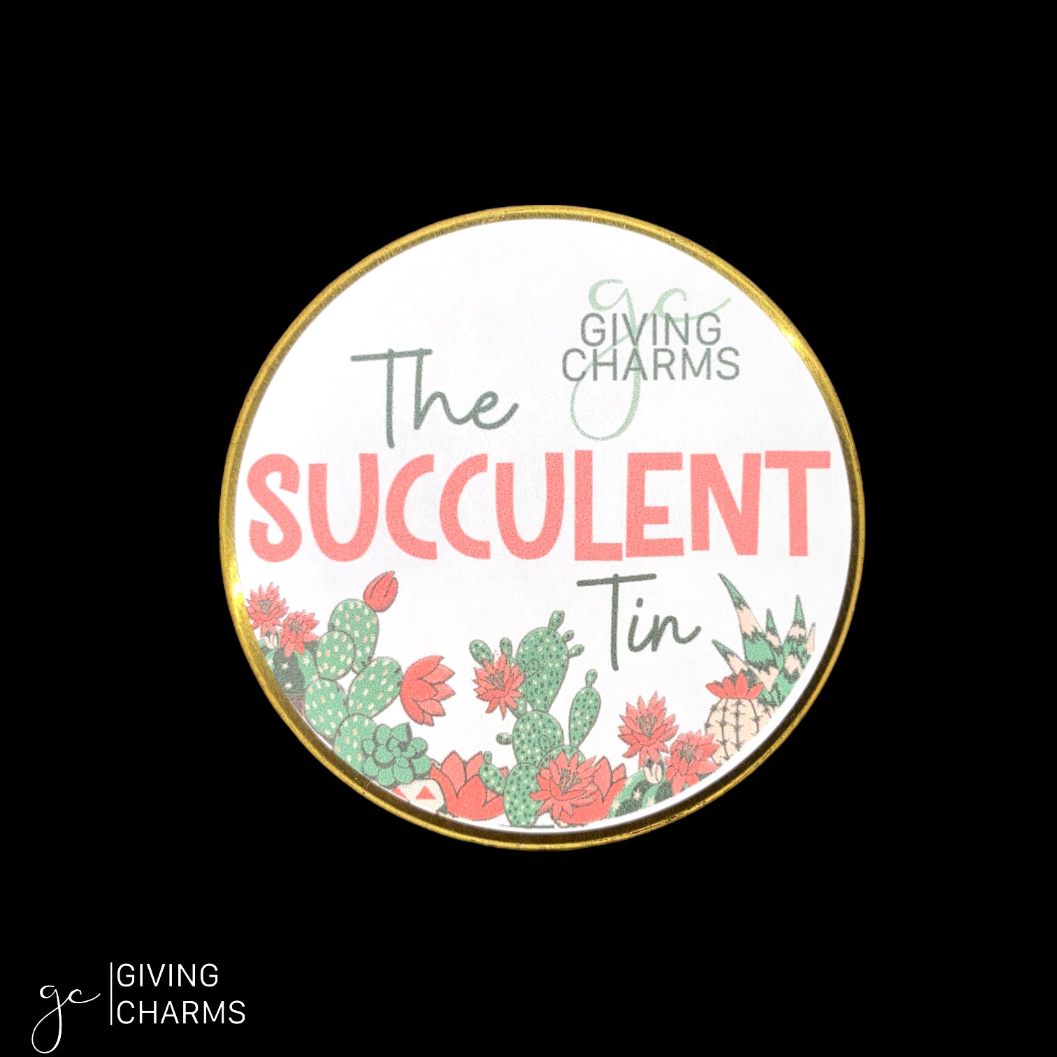 Love succulents & making people feel special? Well TODAY IS YOUR DAY! This tin features 14 Wear & Share charms, stored conveniently in a tin, great to keep in your car, desk or purse. Choose your clip style: Gold, Silver or Rustic Metal.