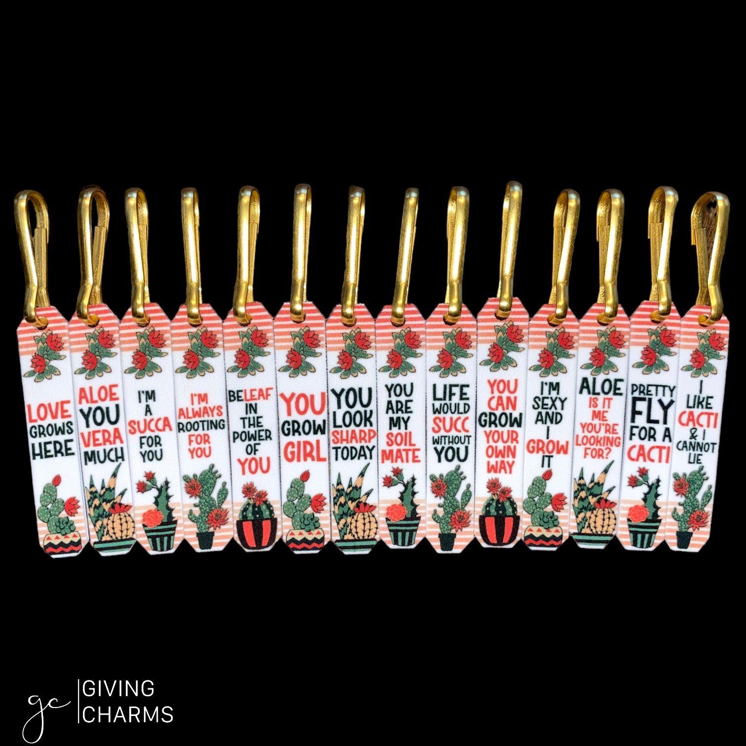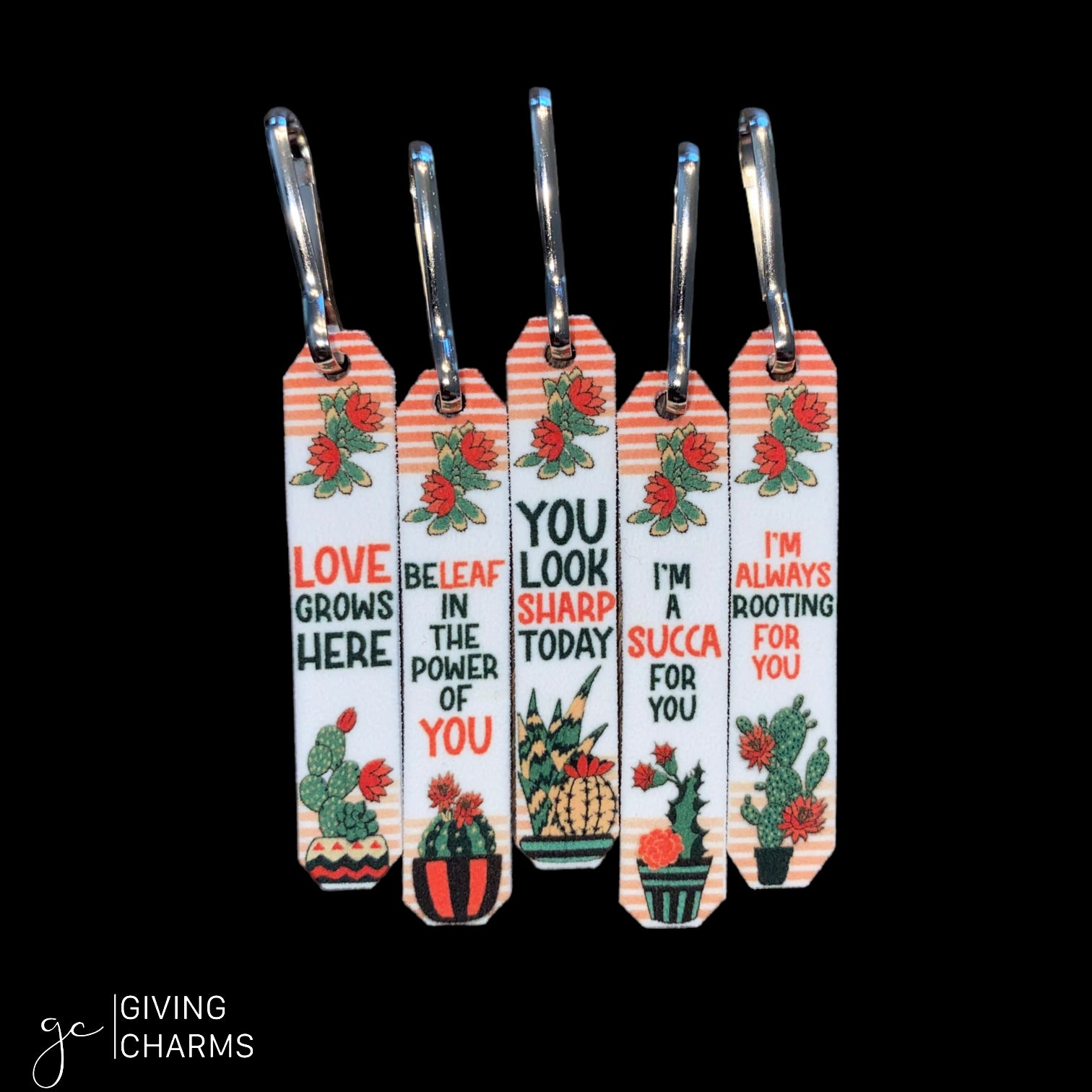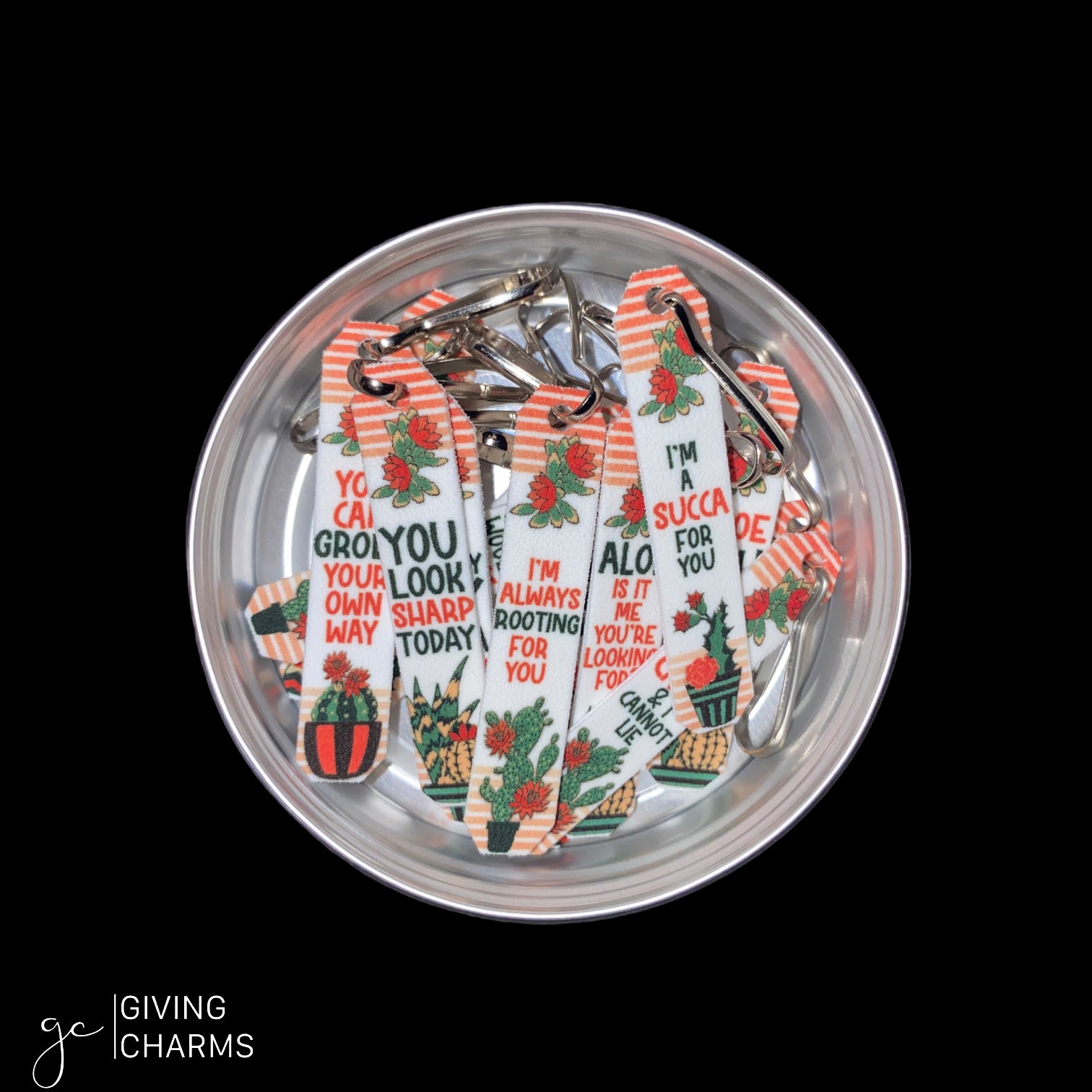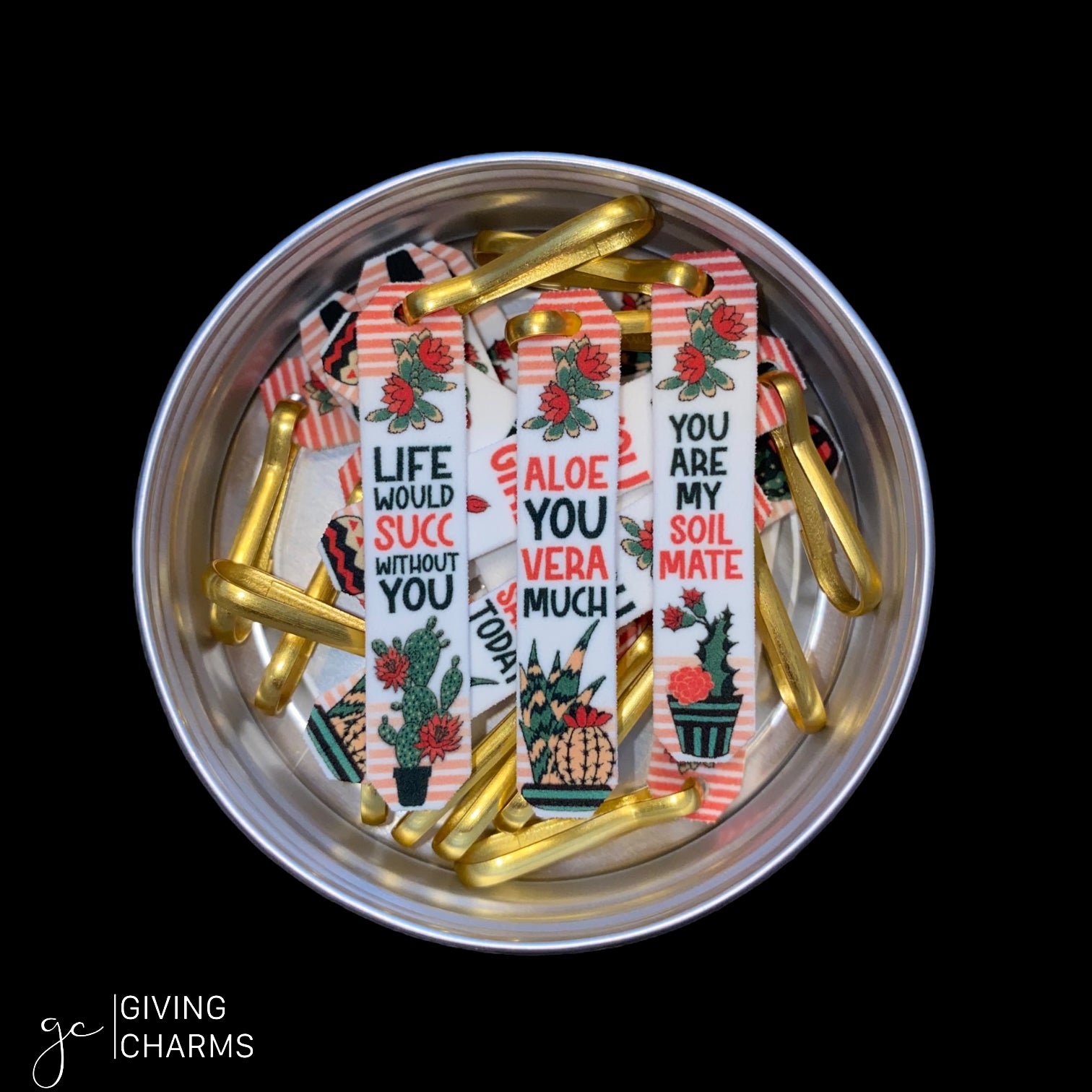 Love succulents & making people feel special? Well TODAY IS YOUR DAY! This tin features 14 Wear & Share charms, stored conveniently in a tin, great to keep in your car, desk or purse. Choose your clip style: Gold, Silver or Rustic Metal.