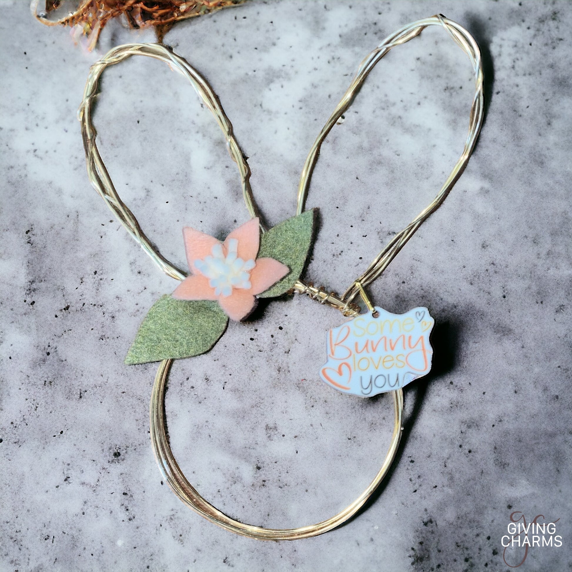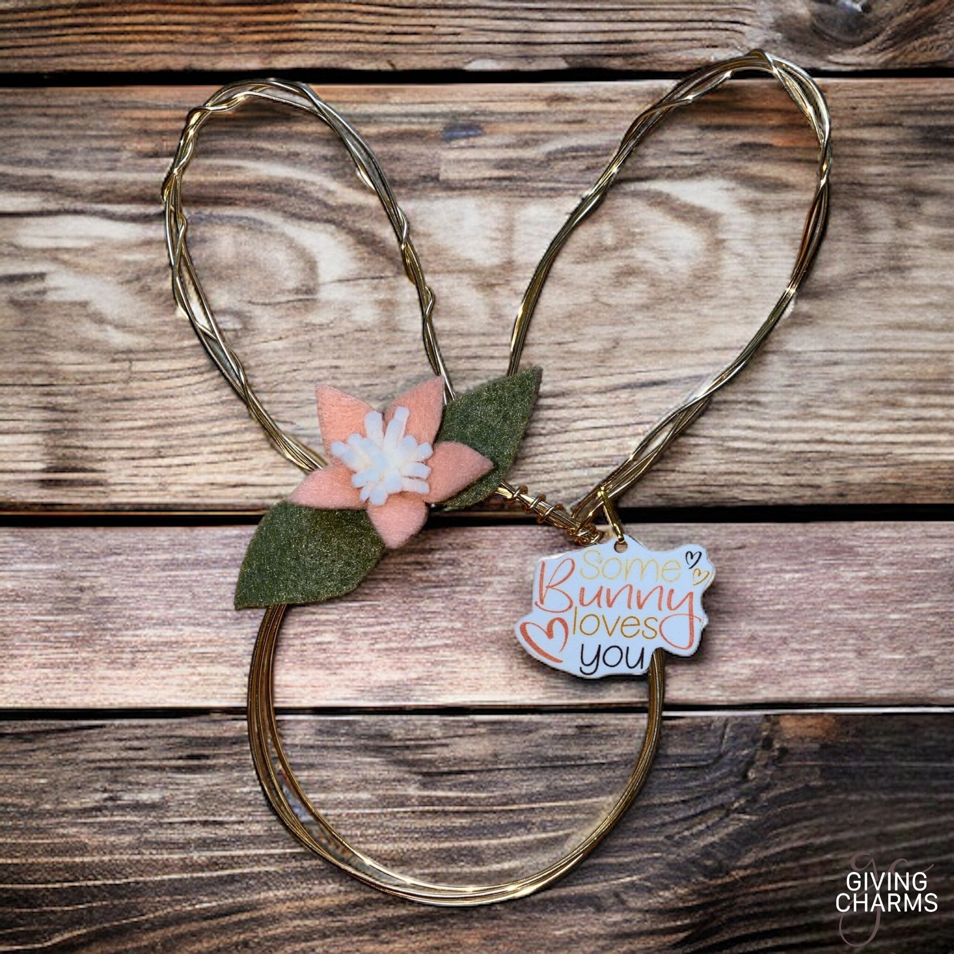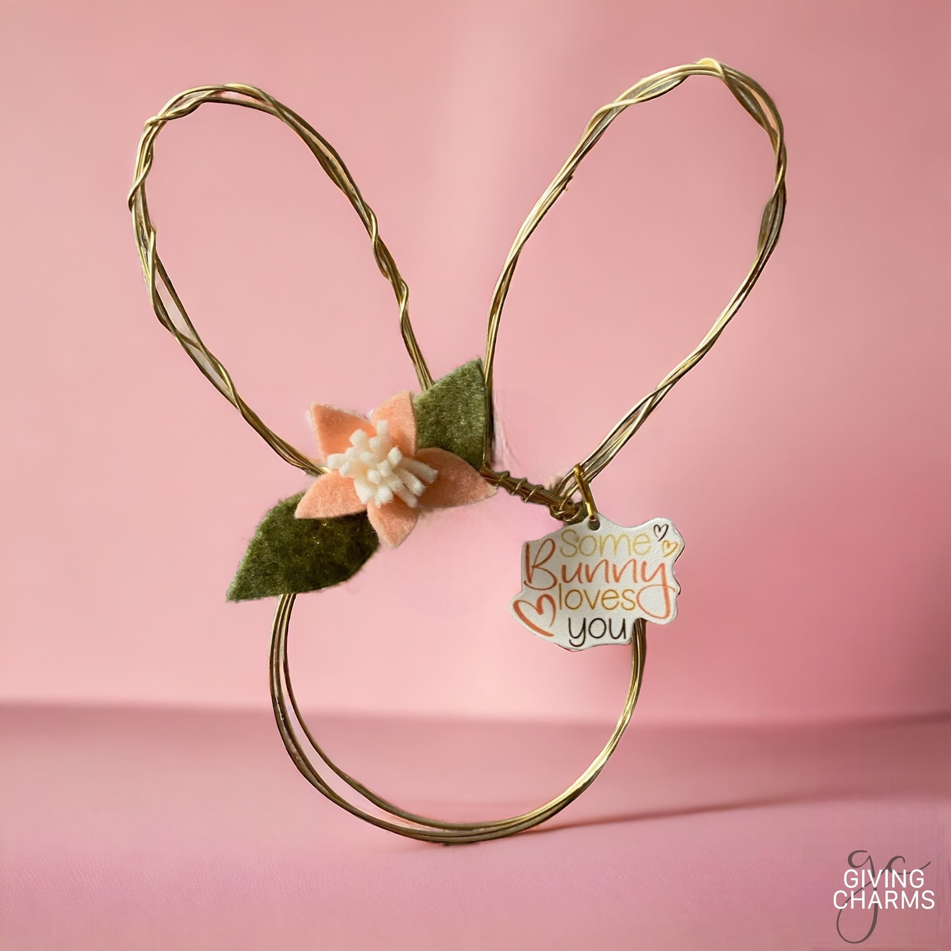 Add an Easter POP to your wall or door with this adorable Wire Bunny. Bunny head is approximately 7 inches tall & is handmade with wire, felt flowers, and of course a "Some Bunny loves you" charm. Hanger is clear, so not to take away from the art. Choose from Gold or Black Wire.