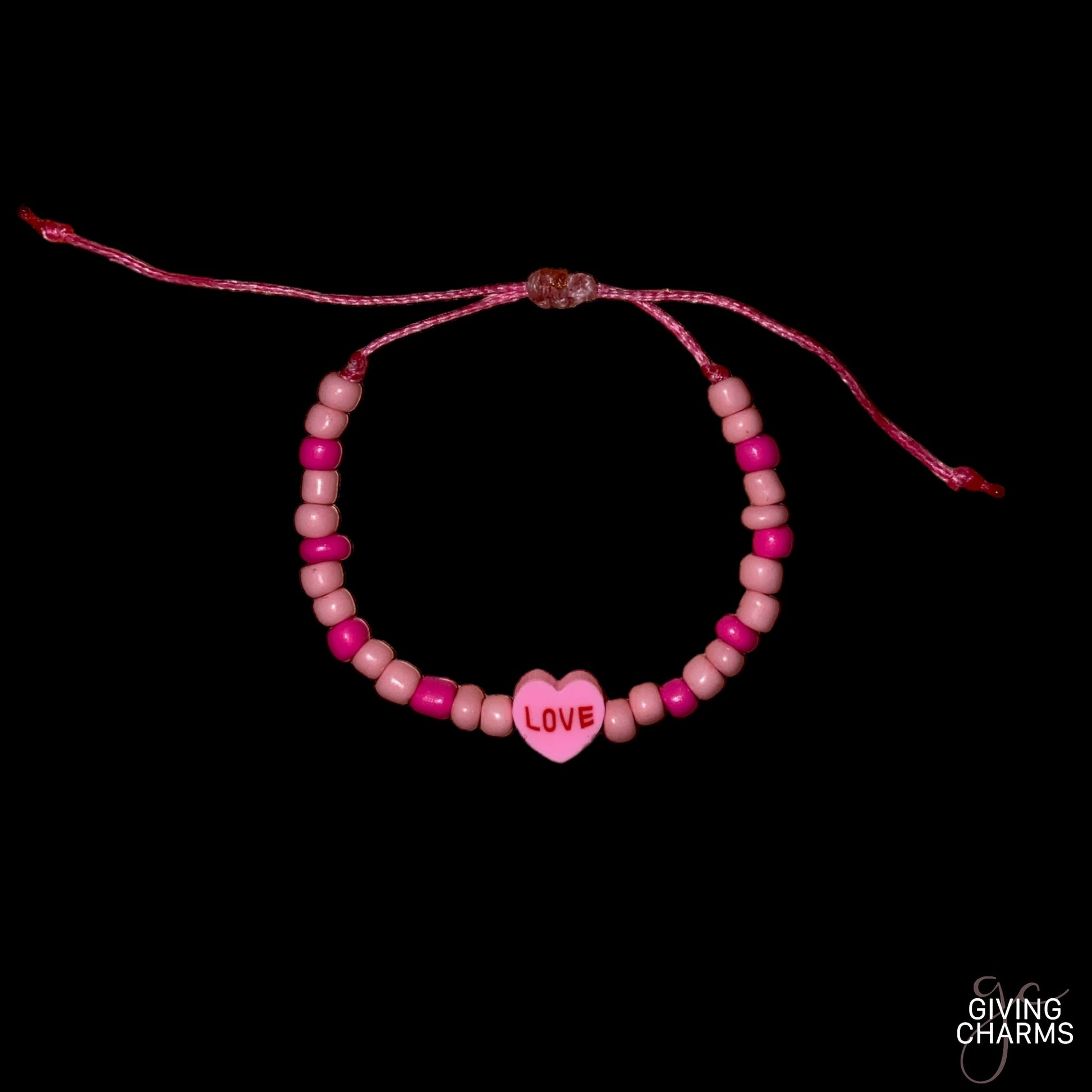 The perfect little gift to show a child they're loved. This youth-size adjustable bracelet features a LOVE pink conversation heart surrounded by beads & packaged in a cute felt heart pocket.